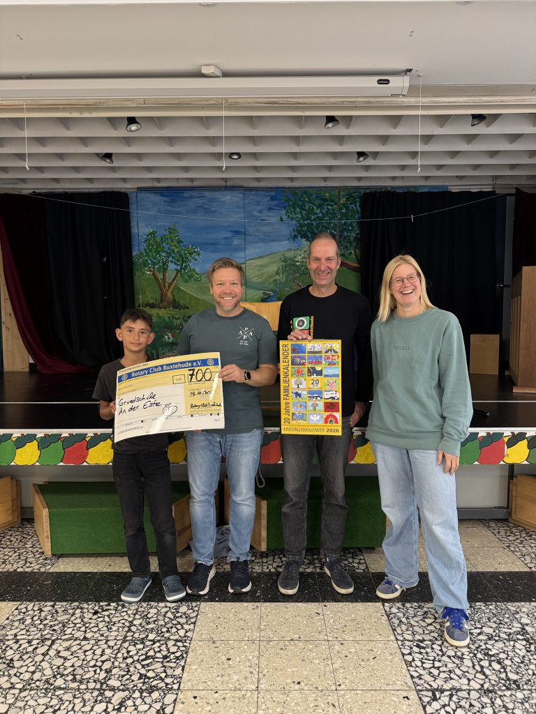 - Am 02.10.2025 war Herr Lange vom Rotary Club da. Er überreichte uns ein großzügiges Preisgeld für die Teilnahme am Altstadtlauf. Baran aus der Klasse 4b wurde sogar als einer der schnellsten Teilnehmer geehrt.