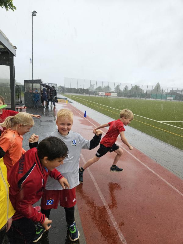 Bundesjugendspiele bei strömendem Regen. Zum Glück konnten wir in die beiden Turnhallen ausweichen.
